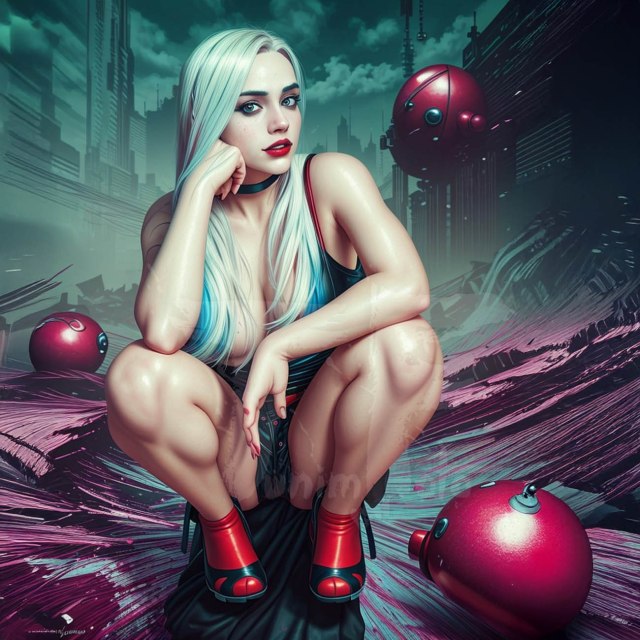 MAE as Harley Quinn character exterior portrait; Download free photo wallpaper 9:21