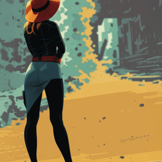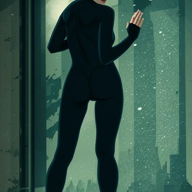 MAE – Stylish Animated Figure Against Snowy Cityscape; urbex; wallpaper